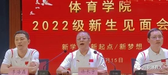 体育学院院长徐长宇讲道,大学是人生之中的伟大转折点,进入大学意味着要有责任和担当,新的征程,新的挑战,在时代变革中要胸怀家国、志存高远、脚踏实地、练就本领,在时代洪流中奋勇搏击!